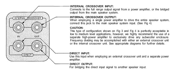 The NL-4 connections are wired (+1 and -1) for the mains. And (+2 and -2) are wired for the subwoofers. The panel mount connections on the subwoofer are wired +1 and -1 jumpered between the two connections and +2 and -2 feed signal to the speaker. The main speaker are wired in the reverse order. By doing this we are not limited to a specific speaker configuration or patch point. In other words you can plug into any connection and the speakers will recieve the proper signal source. This also works as well if you happen to be in a small venue where subs are not needed, the system does not require any special patching. Just plug the cable in and enjoy.